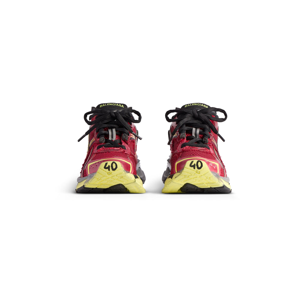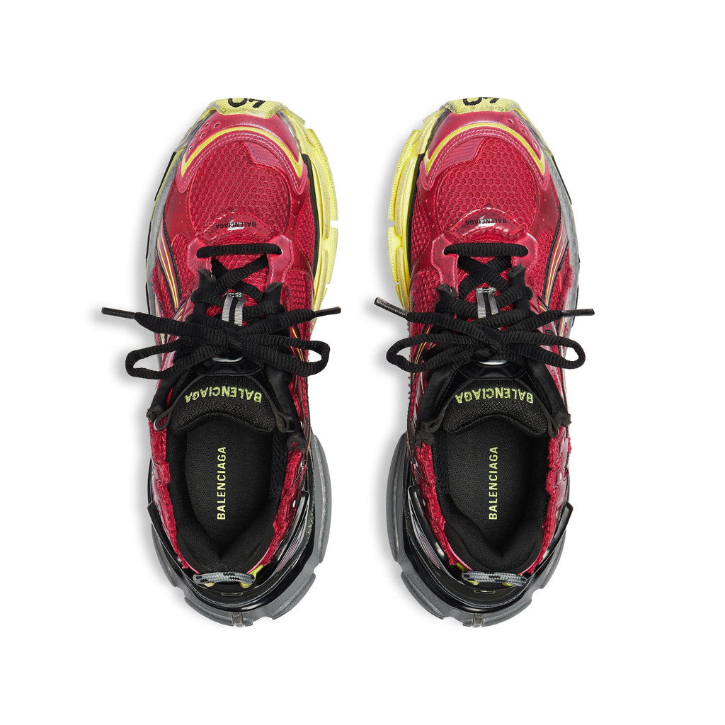 .Leather free • Sneaker • Polyurethane and polyester • Worn-Out effect • Printed size at the edge of the toe • Debossed size at back • Runner logo printed on exterior • Balenciaga logo embroidered on the tongue • Balenciaga logo at the back of the heel • Back pull-on tab • Made in China